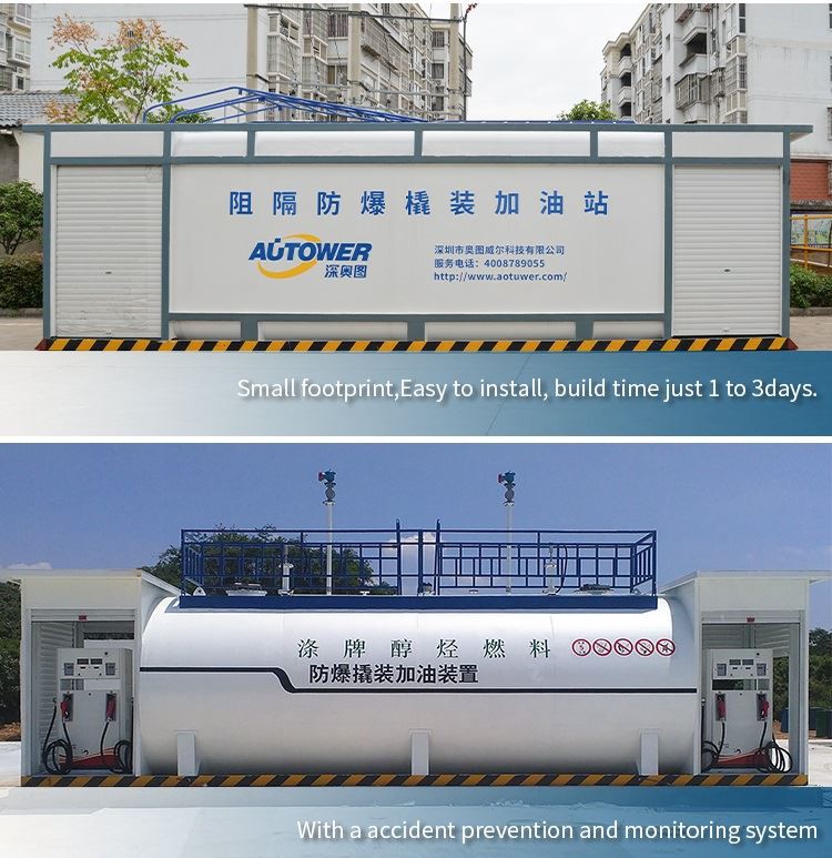 Slydimo montuojama degalinė / mobili degalinė yra tam tikra pildymo įranga, įskaitant standartinę talpyklą, vidinį rezervuarą, degalų dozatorių, alyvos pakrovimo siurblį, naftos pildymo vamzdynus ir iškrovimo vamzdynus, elektros paskirstymo spintą, gesintuvą, statinę įžeminimo signalizaciją, alyvos iškrovimo degalų filtrą, greitą sujungimą, skysčio lygio matuoklį ir pan. Palyginti su įprastomis degalinėse, mūsų konteinerių degalinė yra ekologiškesnė ir saugesnė, ji gali sutaupyti vietos ir žemės.